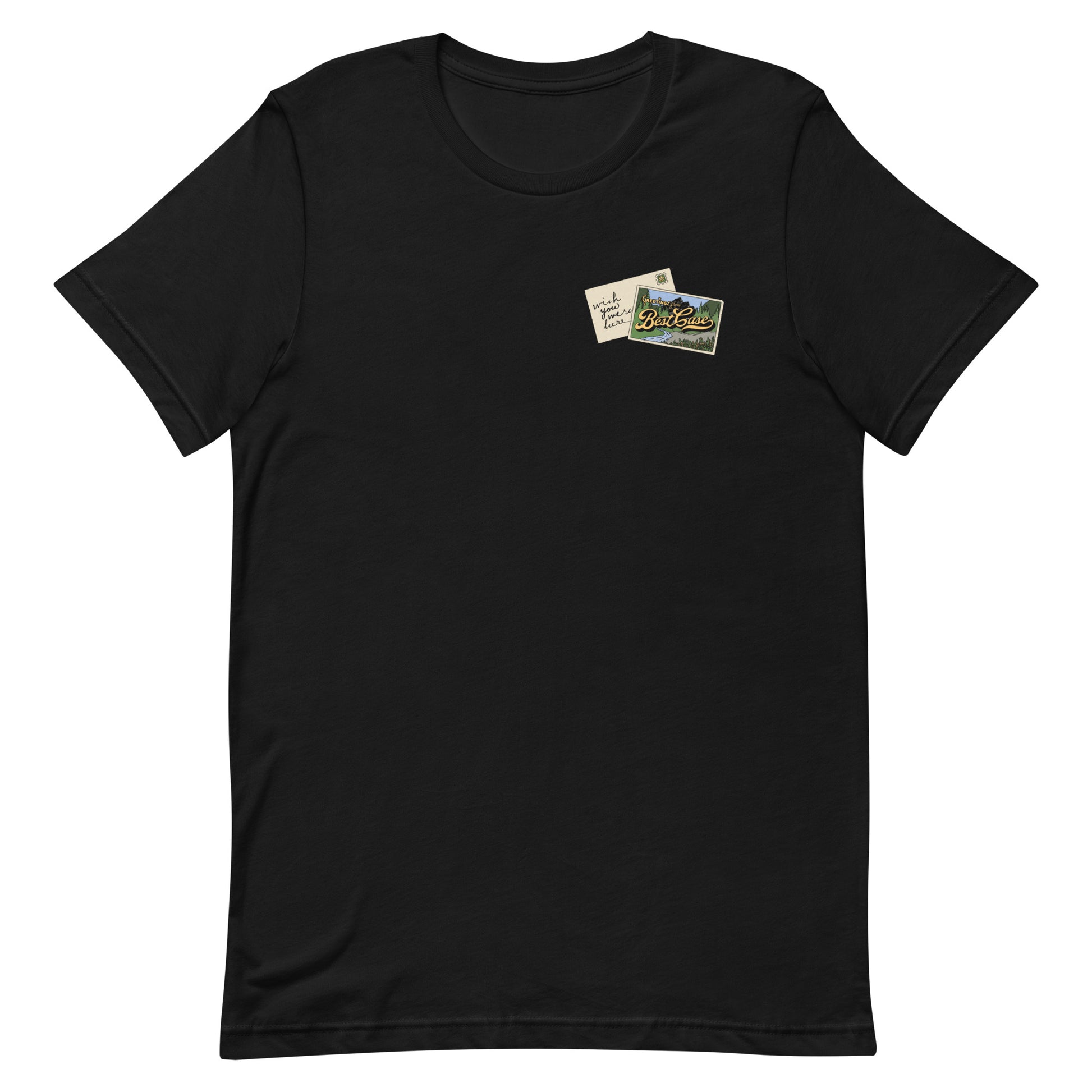 Best Case Postcard Tee printed on black Bella + Canvas Unisex T-Shirt.